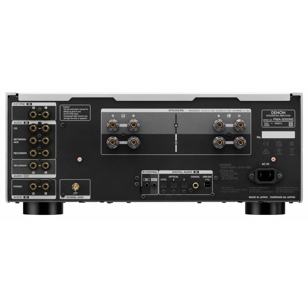 The Denon PMA-3000NE delivers 160W per channel at 4 ohms and 80W per channel at 8 ohms, driving even the most demanding speaker to deliver superior sound in any scenario. Designed and manufactured at Denon facilities in Shirakawa, Japan.